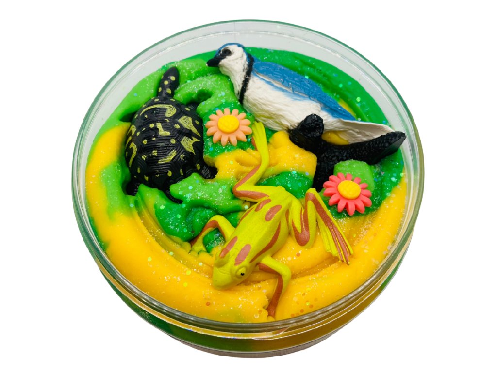 250 g trojbarevné BARVOLÍNY (světle, tmavě zelená a žlutá barva). Obsahuje tři postavičky reálných zvířátek, mohou se mírně lišit dle skladových zásob.