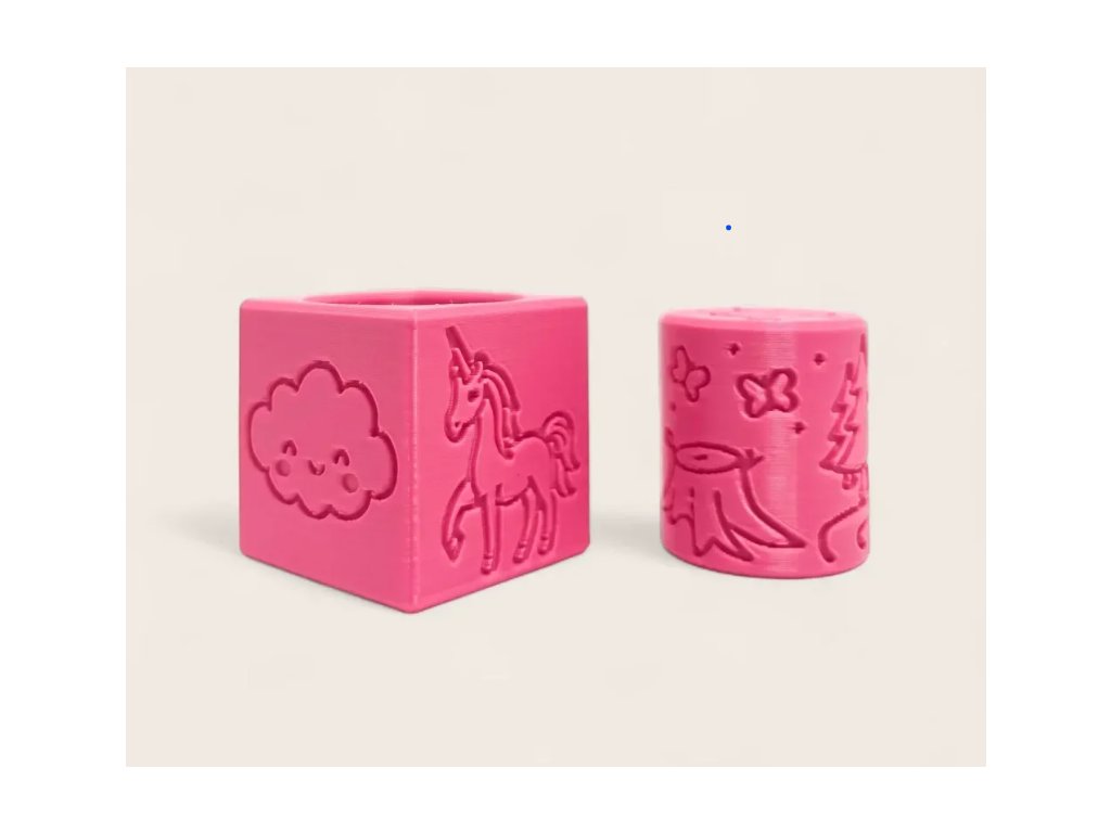 Rozměry: kostka 36x36 mm, váleček výška 33 mm, průměr 29 mm