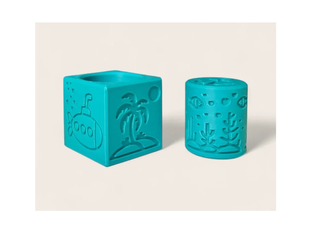 Tato jedinečná kostka zavede děti na dobrodružnou cestu do podmořského světa. Každá ze stran kostky nabízí nový motiv k objevování a čeká, až jej děti otisknou do modelíny. Uvnitř kostky je navíc schován speciální váleček s detailním vzorem podmořského světa. Hra s obtiskovací kostkou rozvíjí dětskou kreativitu a jemnou motoriku, a zároveň přináší chvíle radosti nejen pro děti, ale i pro jejich rodiče.